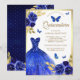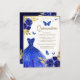 Royal Blue Floral Dress Butterfly Gold Quinceanera Invitation