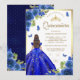 Royal Blue Floral Dress Butterfly Quinceanera Invitation