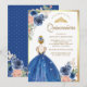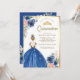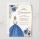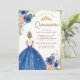 Royal Blue Floral Dress Princess Gold Quinceanera Invitation