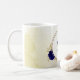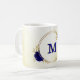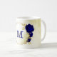 Beautiful coffee mug featuring Royal blue flowers and gold leaves.