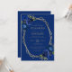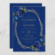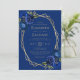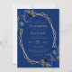 Royal Blue Floral Gold Geometric QR Code Wedding Invitation