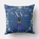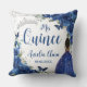 Royal Blue Floral Princess Silver Quinceañera XV Cushion