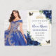 Royal Blue Floral Quinceañera Butterflies Picture Announcement Postcard