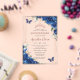 Make a dazzling first impression with this luxury acrylic Quinceañera invitation featuring rich royal blue florals, shimmering rose gold accents, and delicate butterfly details. Printed on high-quality clear or frosted acrylic, this modern and elegant Sweet 15 invitation adds a sophisticated touch to your celebration.