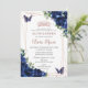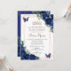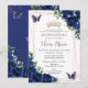 Royal Blue Floral Rose Gold Quinceañera Butterfly Invitation