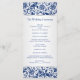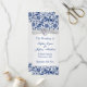 Royal blue floral swirls pattern decorated with printed images of silver white ribbon and jewel in the shape of heart Wedding Program Rack card.