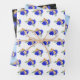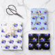 Royal Blue Flowers and Greenery Pattern Wrapping Paper Sheet