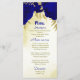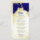 Beautiful wedding menu card featuring Royal blue flowers and gold leaves