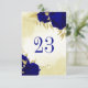 Royal blue flowers gold leaves table number