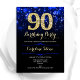 Royal Blue Gold 90th Birthday Invitation