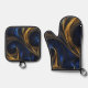 Royal Blue Gold Abstract Swirl Oven Mitt & Pot Holder Set