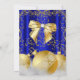 Royal Blue Gold Bows Christmas Holiday Party Invitation. Elegant Xmas gold baubles with white snow gold sparkle glitter. Please Note: All flat images!