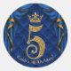 Royal Blue & Gold Crown 5 5th Birthday Party Classic Round Sticker