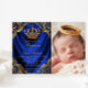 Royal Blue Gold Crown Little Prince Baptism Invitation