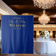 This photo wall backdrop is romantic and elegant at the same time. The design features a thin and minimalist uneven golden edge with golden typography for customisable Till Forever, Mr and Mrs Last Name and wedding date. Customisable royal blue background