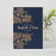 This invitation features a sophisticated combination of royal navy blue and gold, perfect for a formal wedding. It's customisable, features intricate details creating a sophisticated and luxurious atmosphere. The elegant design, combined with the timeless colour palette, makes it perfect for a formal and upscale wedding celebration.
