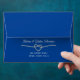 Simple, elegant, minimalist, modern royal blue 5x7 envelope for wedding invitations with return address and gold rope heart.