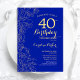 Royal Blue Gold Floral 40th Birthday Party Invitation