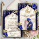 Royal Blue Gold Floral Anand Karaj Sikh Wedding Invitation