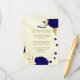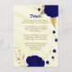 romantic royal blue flowers and gold leaves against elegant marble background botanical details enclosure card.