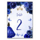 Royal Blue Gold Floral Princess Quinceañera Table Number