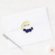 Beautiful wedding thank you sticker featuring Royal blue flowers and gold leaves.