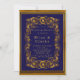 Design features a art nouveau design in shades of col alt blue and gold flourishes on a blue backdrop. Calligraphy or type writing with the design artwork. On the back of the cards is royal blue and gold damask patterns. This is a mix and match collection piece. Great for your wedding celebrations!