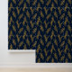 Royal Blue Gold leaves Botanical Pattern Wallpaper