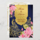 Royal blue gold peacock pink lotus Indian wedding Invitation