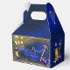 Prince baby shower favour boxes with pretty royal blue and gold prince things on a beautiful royal blue and gold background. You can customised with your text.