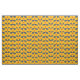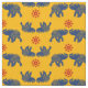 This Indian themed fabric features illustrations of jewelled elephants in royal blue with red geometric accents set against a golden yellow background. The print on this material is non-directional making it perfect for any sewing project.