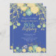Royal Blue Green Yellow Floral 80th Birthday Invitation