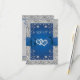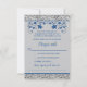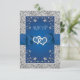 This romantic royal blue and grey floral wedding RSVP card is the smaller of two sizes available and it has an image of a pair of joined hearts overtop a royal blue ribbon and bow image running across the centre of the response card. The backside has a grey background with your RSVP details and meal selections printed in royal blue with a royal blue floral arch surrounding the wording at the top. There is a simulated silver border around the entire card on the front and at the top and bottom of the back. If you need any additional matching items, please email your request to niteowlstudio@gmail.com or use the Zazzle chat feature to get in touch.