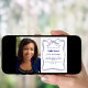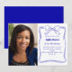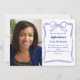 A white background, decorated with a royal blue hand-drawn bow and frame. Personalise and add a photo, name and party details.