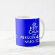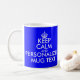 Royal blue Keep Calm Mug | Customise text template. Cute keepcalm gift idea for men and women. Customise background colours ie blue. Create your own funny KeepCalmandCarryOn parody. Simply edit the text of this template to make a unique design. Popular carryon quotes: Keep calm and party on. Keep calm and love me. Keep calm and drink coffee. Personalised mugs are a great gift idea for friends and family.