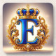 A lavish blue letter E monogram framed by intricate gold scrollwork and a regal crown, creating a bold, high-end emblem ideal for luxury branding, invitations, and classic design themes.