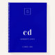 A royal blue background and white text. Personalise and add your logo, monogram initials, name and a title year. Your logo both on the front and the back. Space for your website address on the back.