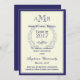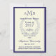 This formal elegant graduation announcement features a royal blue border and monogram initials at the top. The ornate calligraphy style embellishment in the centre and laurel watermark gives it a touch of class. Personalise these announcements with your graduation information. There is also plenty of room on the back for more information.