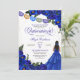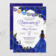Quinceanera invitation in royal blue roses with gold accents and a girl with elegant ball gown. Check the shop for this invitation with girls in different hair colours and skin tones.