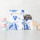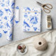 Royal blue peacock chinoiserie pattern gift wrap, blue and white.