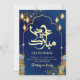 Royal Blue Peacock Feather and Gold Eid Mubarak Holiday Card