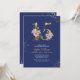 Royal Blue & Pink Magnolia Floral Quinceanera Invitation