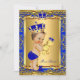 Royal Blue Little Prince Crown Baby Shower. Brunette Baby Shower Boy baby shower with toy bear invitation. Elegant gold damask jewel crown.