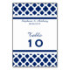 Royal blue and white quatrefoil pattern wedding table number cards.