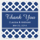 Royal blue and white quatrefoil pattern wedding thank you stickers.