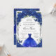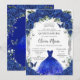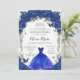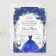 Royal Blue Roses Floral Dress Quinceañera Silver Invitation