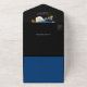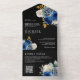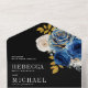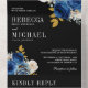 Royal Blue Roses Floral QR Code Black Wedding All In One Invitation