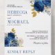 Royal Blue Roses Floral QR Code Wedding All In One Invitation