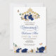 Royal Blue Roses Gold Tiara Butterfly Quinceañera Invitation