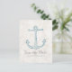 Perfect for a nautical themed wedding is this Rustic Anchor Save the Date Postcard with a dark blue boat anchor on a light beige marble look background. This classic and simple save the date announcement is easy to customise with your wedding details. Find more personalisation options by clicking Customise.